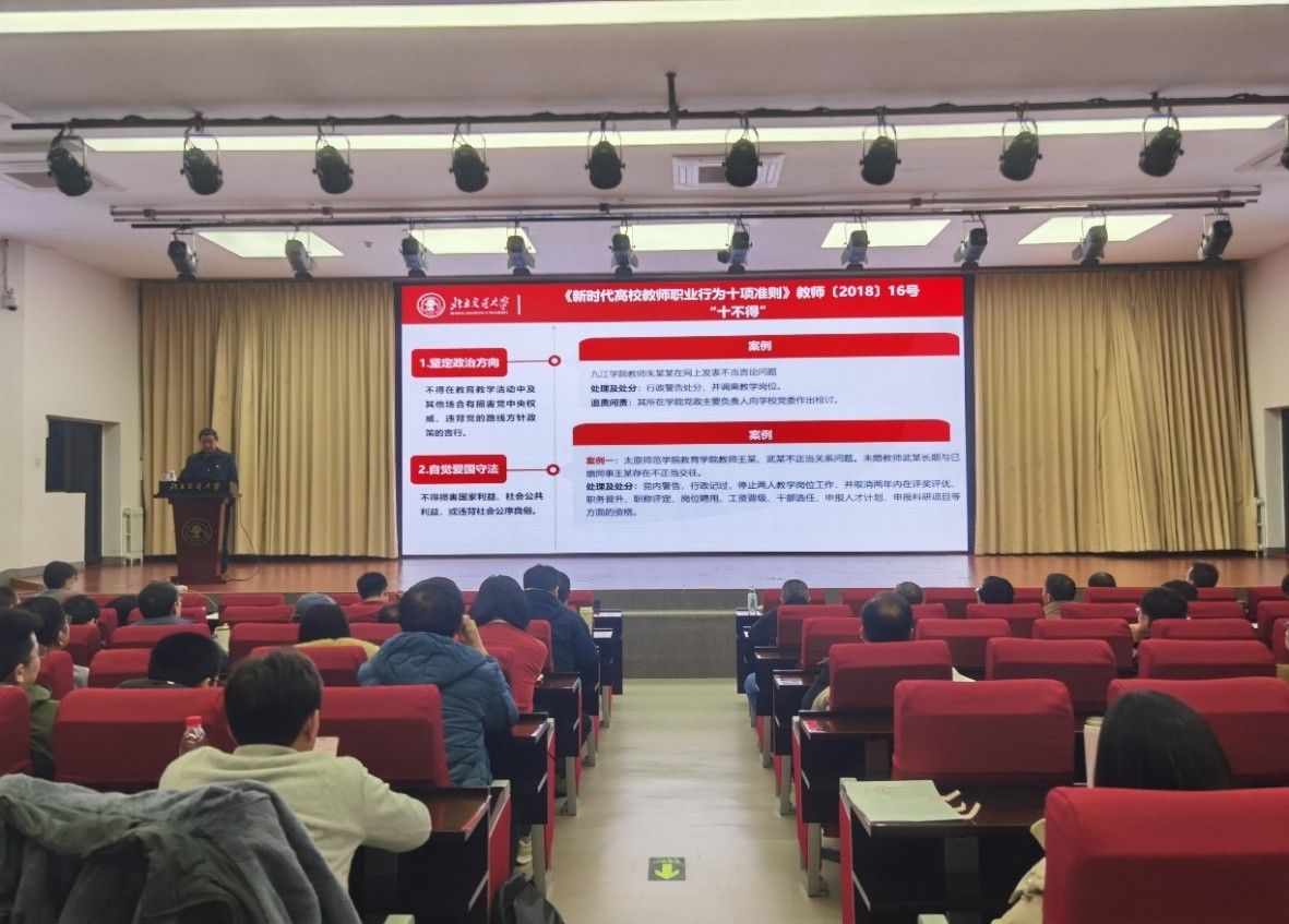 为结合实际工作,进一步提高教师的思想政治水平,更好践行新时代高校教师职业行为十项准则,bw西汉姆联于2025年11月27日下午继学校师生党员集中培训2025年秋季学期第二课后召开了全院教师教学规范培训大会和师德师风教育警示大会。会议由公司党委书记闻映红主持,学院全体教职工参加。