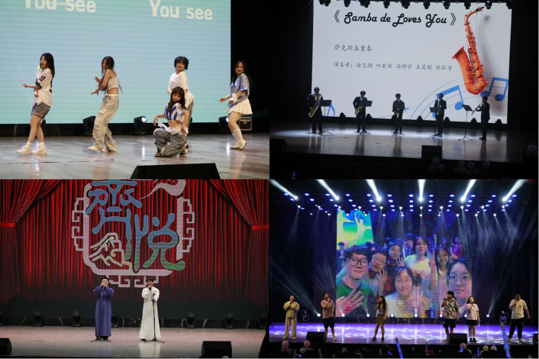 萨克斯五重奏《Samba de Loves You》配合舞台上灵动的灯光与律动,将毕业季的欢庆、不舍与对未来的憧憬完美融合,引发全场观众随节奏摇摆、鼓掌喝彩;相声《毕业采访》以幽默诙谐的访谈形式盘点大学四年趣事,成为晚会最具共鸣的“笑果担当”,而紧随其后的抽奖环节更是让晚会气氛燃至顶点。