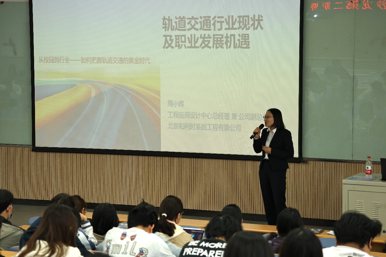 周小辉以“当前轨道交通行业领域现状及职业发展机遇”为主题,围绕轨道交通行业领域发展现状、职业发展机遇与挑战、如何全面提升自身技能等方面进行详细讲解。她结合个人成长经历,鼓励同学们要提升行业认知和自我剖析,秉持终身学习的理念,不断锤炼专业素养,全方位提升综合素质,树立正确的成才观、就业观和择业观,书写新时代青年答卷。