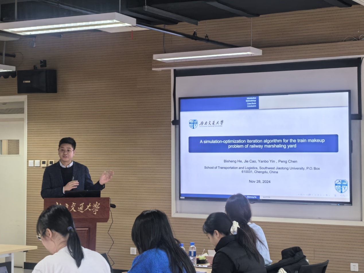 何必胜以“A Simulation-optimization lteration Algorithm for the Train Makeup Problem of Railway Marshaling Yard”为主题,介绍了其在编组站作业优化领域的前沿研究成果。何教授详细阐述了在编组站作业优化研究中,所采用的具体建模思路和求解策略,展示了所提模型如何有效优化编组站资源配置,提升编组站作业效率。